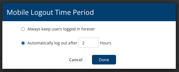 - Added the ability to define mobile log-out times per role, ensuring task completion without being logged out of the mobile application. Mobile users must be on version 2.9 and greater for this setting to be honored.