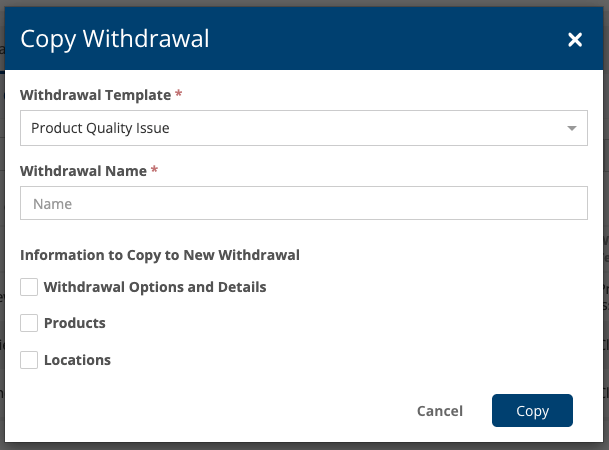 - Added the ability to copy existing withdrawals to quickly reissue or extend a withdrawal, accelerating the recall process and reducing the risk of errors.