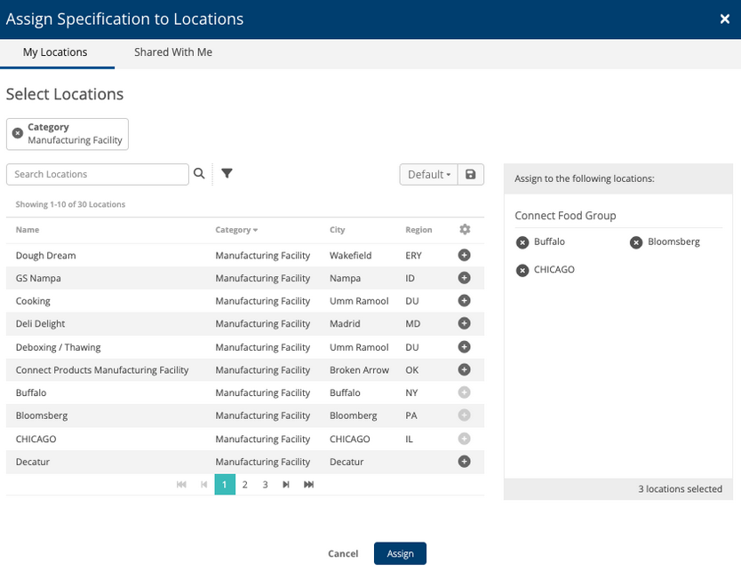 3. Once created, click on Actions in the top right-hand corner and select assign to Locations.