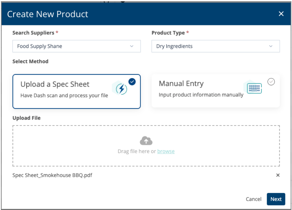 - Implements AI to create a product in the system from a document or specification sheet to allow for time savings and ensure accuracy. The AI will pull any standard attribute present on the product type, but will not pull custom attributes that may be present.
