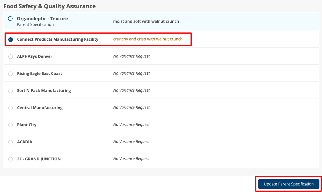 - Added ability for Community Owners to assign a specification to several locations to collect information about a product, providing an easy way to gather several different formulations and then update the parent specification based on a combination of those location variances.