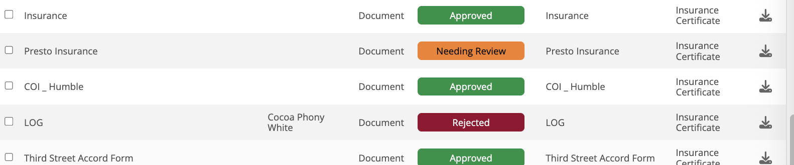 Community owners can set up a COA Document workflow that can sort documents into the following categories: